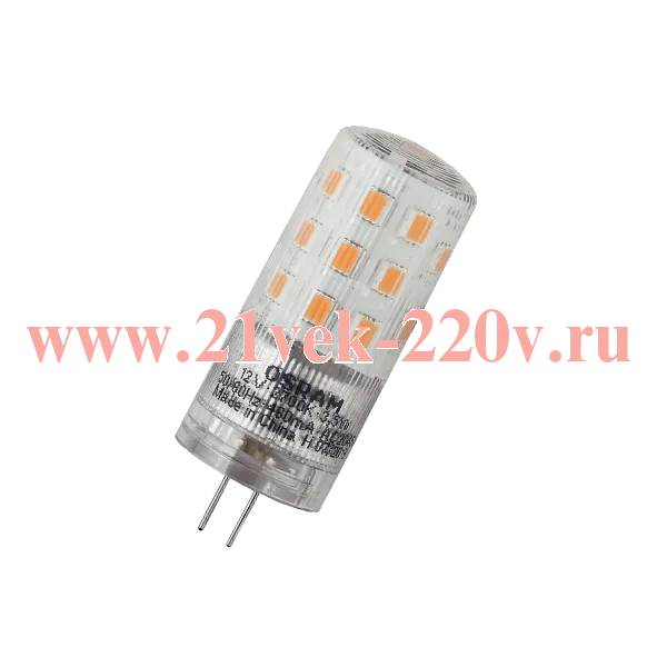 Светодиодная лампа OSRAM LEDPPIN 40 3,5W/827 G4 мощностью 3,5 Ватта 12 Вольт с цоколем G4 450lm d18x50mm теплого белого света.