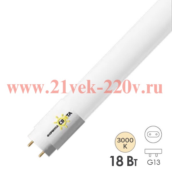 Трубчатая (линейная) светодиодная лампа с двухсторонним подключением, с цоколем G13, мощностью 18 Ватт, теплый белый свет, матовая колба, 1200мм 4603768611837