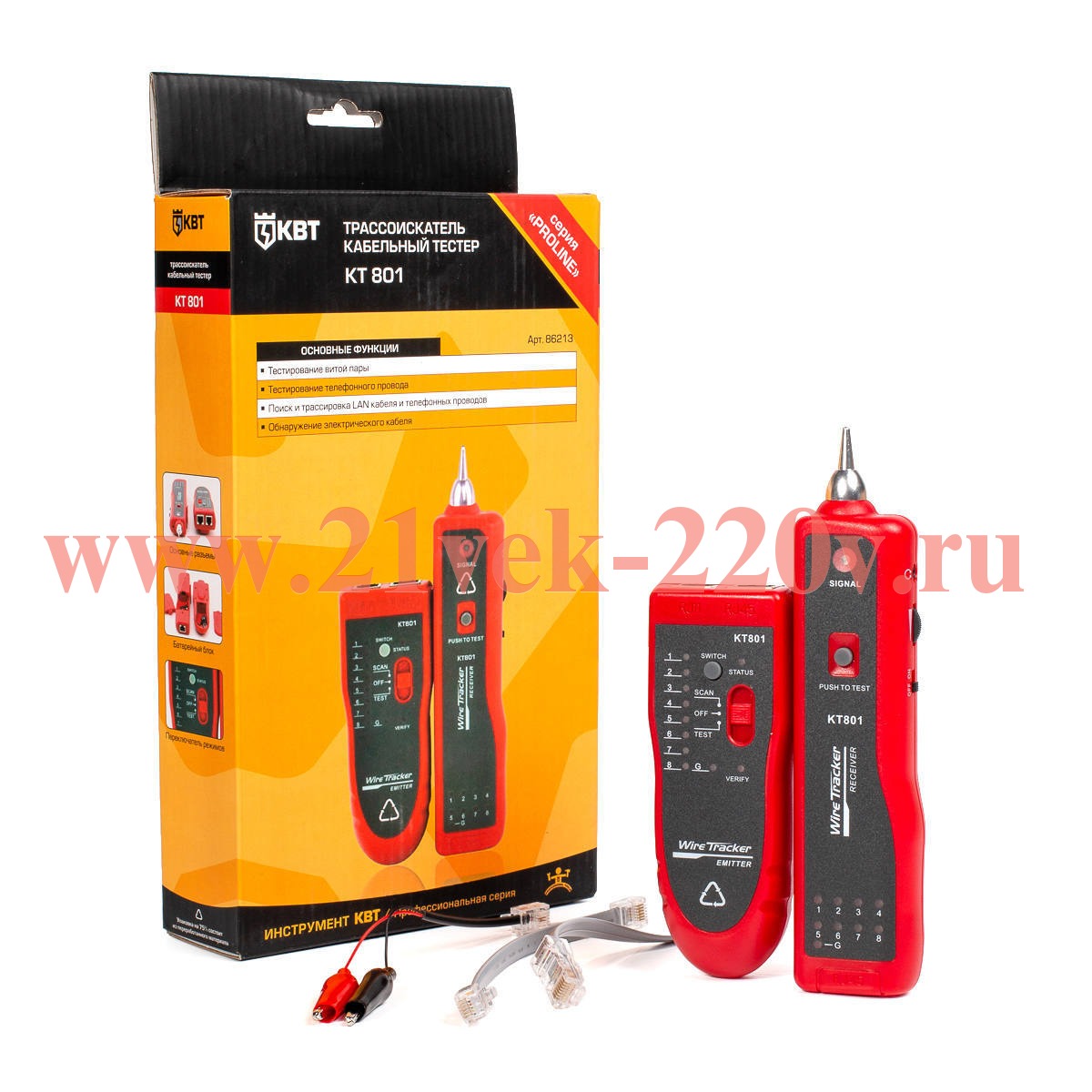 LAN-тестер кабельный с тон-генератором KT 801 серия PROLINE для поиска и маршрута следования витой пары SKU, КВТ Поиск маршрута следования витой пары, телефонного и электрического кабеля, с возможностью обнаружения короткого замыкания и обрыва цепи KT 801 серия PROLINE LAN-тестер кабельный с тон-генератором.