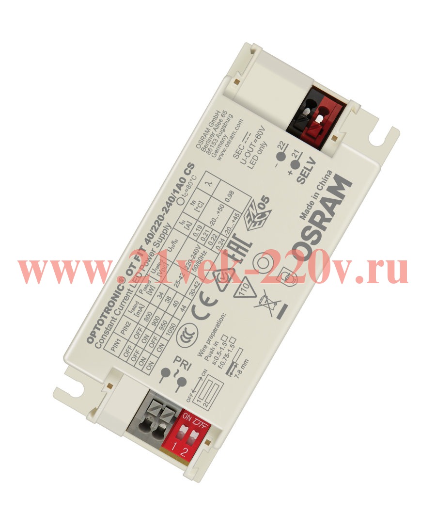 LED драйвер OSRAM OT FIT 40/220…240/1A0 CS 20...44W 800/900/950/1050мА 97x43x29.5mm