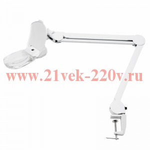 Лупа на струбцине квадратная 3D+20D с подсветкой LED предназначена для визуального увеличения различных мелких предметов или их фрагментов. Такая оптическая система состоит из линзы, удобной настольной подставки и яркой подсветки.Основные преимущества:1. Современный дизайн устройства позволит вам почувствовать себя на шаг впереди других.2. Линза изготовлена из стекла. Обеспечит наиболее четкое изображение с минимальным уровнем искажения.3. Яркая LED подсветка. Возможна работа в условиях отсутствия внешнего освещения.4. Увеличенный срок службы. Достигается за счет использования светодиодов ведущих производителей.5. Удобный пантографический механизм, состоящий из звеньев. Обеспечит хорошую устойчивость и точную фиксацию лупы в пространстве в необходимом положении.6. Рабочий радиус регулировки пантографического механизма достигает 100 см.7. Струбцинное крепление к столу. Зафиксирует лампу-лупу на любой плоской поверхности.8. Экономия электроэнергии. Потребляет в рабочем состоянии всего 6 Вт.9. Встроенный электронный блок управления, благодаря которому лампа излучает ровный свет без мерцания.Технические характеристики:- размер линзы: 160x127 мм- оптическая сила линзы: 3D+20D (увеличение 1.75 раза + 5 раз)- источник света: 6 ярких светодиодов (LED)- потребляемая мощность подсветки: 6 Вт- световой поток: 550 лм- ресурс подсветки: 50000 часов- цвет корпуса: белый- напряжение питания: АС 220-230 В, 50 Гц- размер коробки: 73х25х15 смОбласть применения: - косметология;- тату-салоны;- ювелирное дело;- ремонтные мастерские (радиоэлектроника, механика, а также часовые мастерские);- сборочные производства;- биология;- роботехника;- организации труда людей со слабым зрением;- прочие ручные работы (моделирование, шитьё и вышивание, филателия и прочее творчество, и т. д.);- также другие работы, где требуется дополнительное увеличение и подсветка рабочего поля. Лупа с подсветкой REXANT необходима не только любому специалисту для выполнения работ с высокой точностью и безопасностью для клиента, но также она будет незаменимым прибором в быту.
