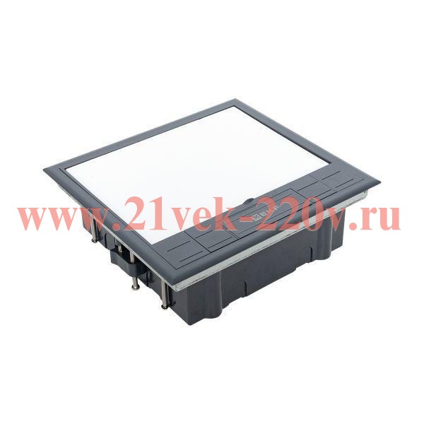 Лючок под розетки – это изделие прямоугольной формы, для компактного размещения электрических и информационных розеток. Лючки могут использоваться самостоятельно при установке в фальш-пол или вместе с коробкой для заливки в бетон, которая устанавливается в момент заливки стяжки. Лючки имеют вводы для установки кабелей внутри пола и выводы непосредственно к потребителю через крышку лючка. Внутри лючка есть посадочные модули (посты) стандарта 45*45 для установки розеток. Все лючки C-Line ударопрочные и выдерживают нагрузку до 153 кг.