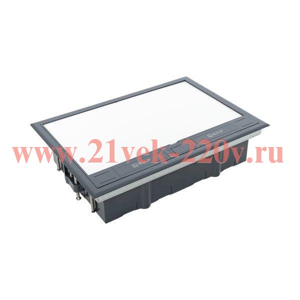 Лючок под розетки – это изделие прямоугольной формы, для компактного размещения электрических и информационных розеток. Лючки могут использоваться самостоятельно при установке в фальш-пол или вместе с коробкой для заливки в бетон, которая устанавливается в момент заливки стяжки. Лючки имеют вводы для установки кабелей внутри пола и выводы непосредственно к потребителю через крышку лючка. Внутри лючка есть посадочные модули (посты) стандарта 45*45 для установки розеток. Все лючки C-Line ударопрочные и выдерживают нагрузку до 153 кг.