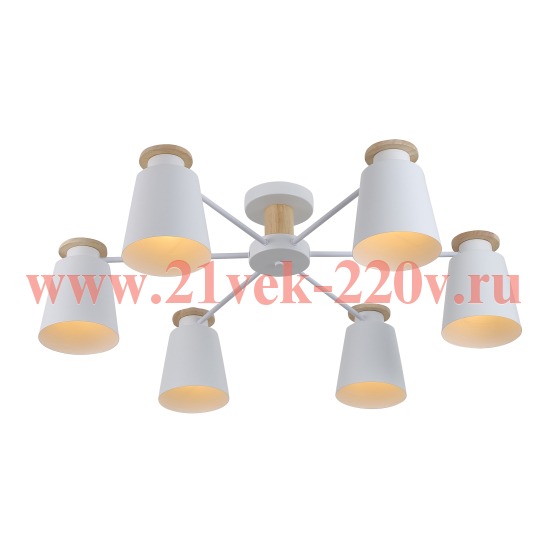 Rivoli Adna - красивая люстра на потолок с белой арматурой и 6 белыми металлическими плафонами. Декорирована элементами светлого дерева. Дизайн люстры создан в Италии. Люстра в гостиную Adna идеальна для интерьеров в скандинавском стиле, в стиле модерн, лофт, кантри. Плафоны отлично направляют свет вниз - такую люстру можно с успехом разместить на кухне, чтобы стол и рабочие поверхности были хорошо освещены. Люстры потолочные Adna ярко освещают комнату до 18 м2. Отличный вариант аккуратной и сдержанной, при этом нескучной люстры в спальню. Лаконичный дизайн этой современной люстры от бренда Rivoli позволяет купить ее практически в любое пространство - вне зависимости от цветового решения интерьера. Размер люстры - 780*780*260 мм. Рекомендуем для этой люстры источники света Е27 мощностью 40 Вт.