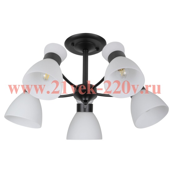 Серия чёрных светильников с опаловыми плафонами — стильное и функциональное решение для современного интерьера. В коллекции люстры на 5 и 8 ламп, а также бра с удобным выключателем-цепочкой. Подходят лампы с цоколем E27, мощностью до 60 Вт (лампы в комплект не входят).