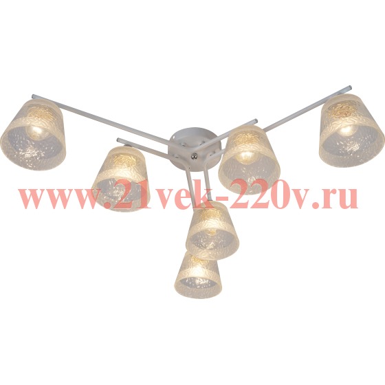 Rivoli Constance (арт. 3155-306) – люстра потолочная под 6 ламп Е27 60 Вт. Люстра в белом цвете идеально подходит для современных интерьеров. В коллекции Constance итальянского бренда Rivoli есть также люстра под 4 лампs – арт. 3155-304. Люстры белые потолочные – настоящий тренд в оформлении жилых пространств. Люстра из металла Constance Rivoli качественно освещает площадь до 18 м2. Такая потолочная люстра хорошо смотрится в небольших жилых комнатах – люстра на кухню, люстра в спальню. Прозрачные стеклянные плафоны люстры имеют красивый рифлёный рисунок и декорированы матовыми полосами.