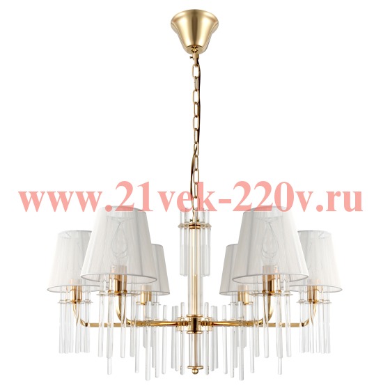 Rivoli Lilith - большая подвесная люстра в стиле современная классика. Итальянская коллекция Lilith Rivoli, в которую входят люстры потолочные под 6 и 8 ламп (арт. 1039-306, 1039-308) и настенное бра (арт. 1039-401), изготовлена из высококачественного легкого металла и декорирована удлиненными стеклянными колбами. Цвет люстры Lilith - французское золото - теплый и уютный. Лаконичные формы арматуры подходят для современных интерьеров, стремящихся к минимализму. Плафоны люстры из прочной прозрачной ткани хорошо пропускают свет. Люстры на потолок Rivoli Lilith c 6 плафонами освещают площадь до 18 м2. Люстры под 6 ламп Е14 40 Вт подойдут для основного освещения гостиной, спальни, детской, кабинета, квартиры-студии. Декоративные элементы отличаются выверенной формой, простотой и высокой прозрачностью под хрусталь. Люстры в спальню Lilith Rivoli помогут создать интерьер в классическом стиле, в замковом стиле, в стиле модерн, эклектика. Идеальны для загородного дома, холла гостиниц, ресторанов.