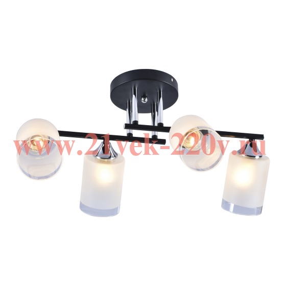 Люстры в гостиную Rivoli Marielle с 4 стеклянными плафонами и надежной металлической арматурой. Белые матовые плафоны люстры имеют элегантный прозрачный ободок по краю. Хороший вариант люстры на невысокий потолок. Корпус люстры (арт. 9073-304) условно поделен на 2 части - по 2 стеклянных плафона с каждой стороны. Это выглядит необычно и равномерно распределяет свет. Для стойкого гальванического окрашивания люстры выбрано стильное сочетание черного и хрома. Матовое стекло плафонов выравнивает световой поток. Такие люстры стоит купить для спальни, они не будут ослеплять ярким светом. Комфортное для глаз освещение люстры очень важно и для гостиной, рассмотрите этот вариант для вашей квартиры, студии или загородного дома. Рекомендуем лампы Е27 60 Вт. Люстры потолочные Marielle входят в серию "Лайт" итальянского бренда Rivoli. Это значит, что дизайнерские люстры можно купить по низкой цене. Коллекцию расширяют современные люстры под 6 и 8 ламп (арт. 9073-306, 9073-308).