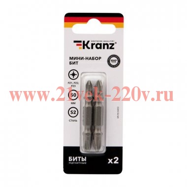Мини-набор бит двусторонних PZ2xPZ2 PZ1xPZ3-50мм (блист. 2шт) Kranz KR-92-0453