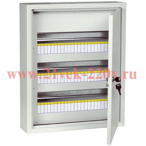 Электрощиток из металла настенного монтажа ЩРн-54з-1 36 УХЛ3, со степенью защиты IP31, трехрядный на 54 модуля, RAL 7035 IEK