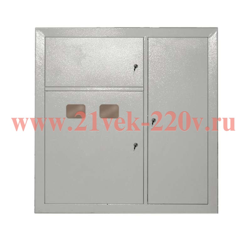 В вводно-учетном и распределительном отсеках размещены перфорированные планки для крепления счетчиков (по количеству квартир). Предусмотрена возможность установки в этом же отсеке аппарата отключения магистральной линии. В распределительном отсеке установлены DIN-рейки для аппаратов групповых линий и элементы для установки шин N и РЕ. Отсек укомплектован оперативной панелью.