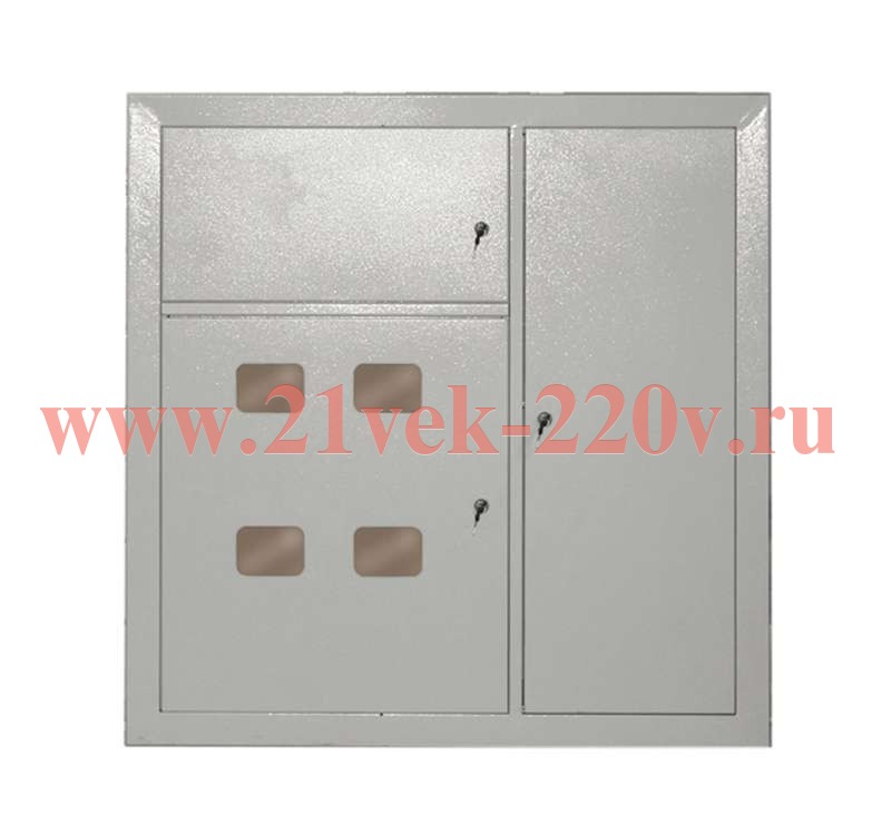 В вводно-учетном и распределительном отсеках размещены перфорированные планки для крепления счетчиков (по количеству квартир). Предусмотрена возможность установки в этом же отсеке аппарата отключения магистральной линии. В распределительном отсеке установлены DIN-рейки для аппаратов групповых линий и элементы для установки шин N и РЕ. Отсек укомплектован оперативной панелью.
