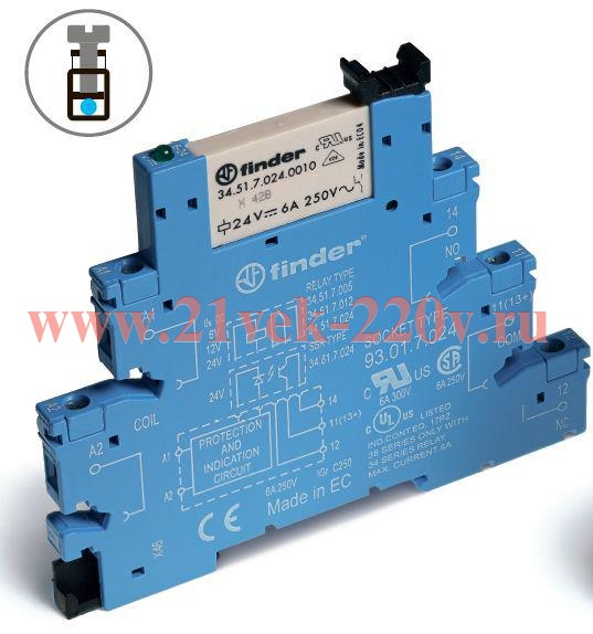 Модуль интерфейсный (сборка 34.51.7.024.5010 + 93.01.7.024) электромеханич. реле 1CO 6А AgNi + Au 24