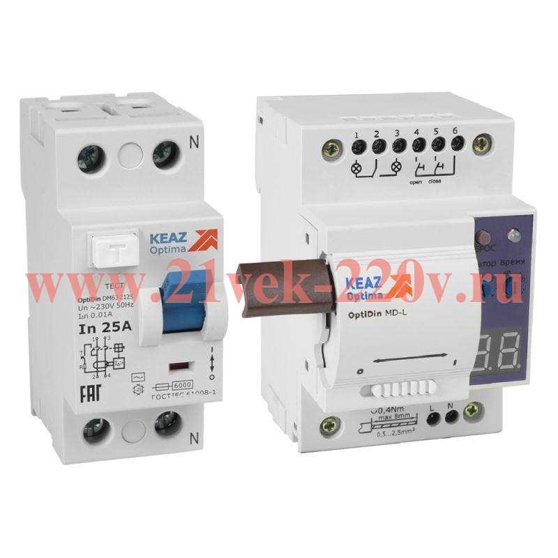 Моторпривод OptiDin MD-L-УХЛ4 + ВДТ без защиты от сверхтоков OptiDin DM63-2263-AС-УХЛ4 (2P 63 30mA)