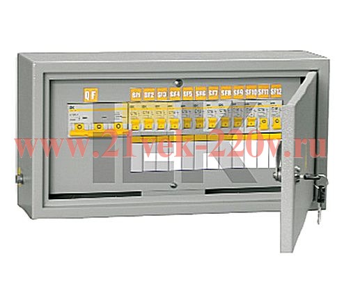 Предназначены для приема и распределения электроэнергии в жилых и производственных помещениях, а также для защиты линий при перегрузках и коротких замыканиях в сетях переменного тока напряжением 230/400 В. Внутри корпуса установлены вводные, трехполюсные и групповые, однополюсные автоматические выключатели, а также шины N и РЕ.