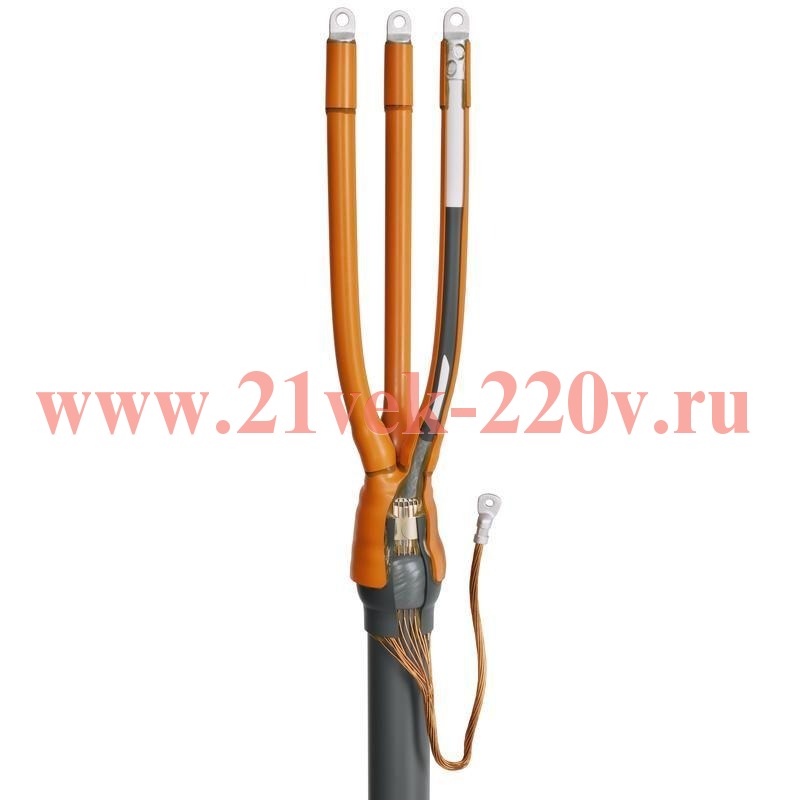 Муфта кабельная концевая 3РКВТп-10-300/400 (Б) внутренней установки для кабелей с ЭПР изоляцией до 10 кВ с болтовыми наконечниками SKU, КВТ оконцевание 3-жильных кабелей.