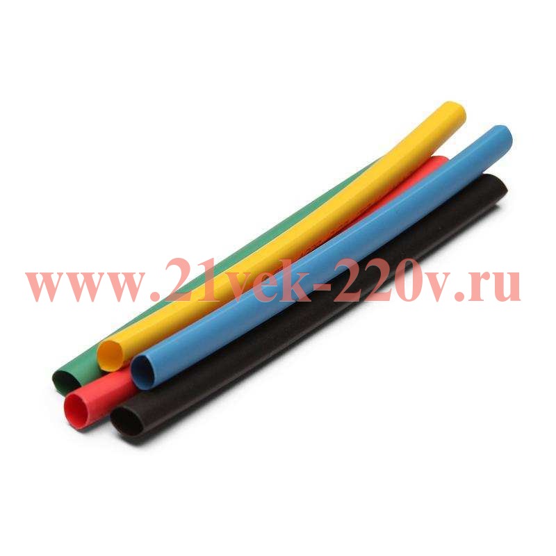 Набор термоусадочных трубок 5 цветов 50/25 (черн, красн, син, желт, зел) с коэффициентом усадки 2:1 в метровой нарезке SKU, КВТ изоляция и антикоррозионая защита электрических соединений, бандажирование кабелей и проводов 5 цветов.