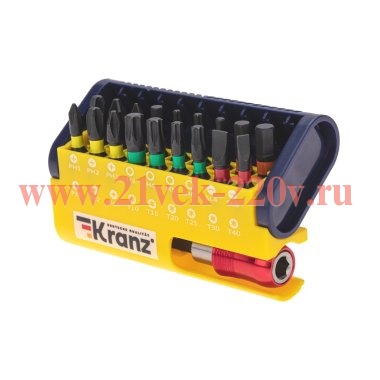 Набор бит с магнитным держателем пластиковый кейс 19 шт Kranz KR-92-0465