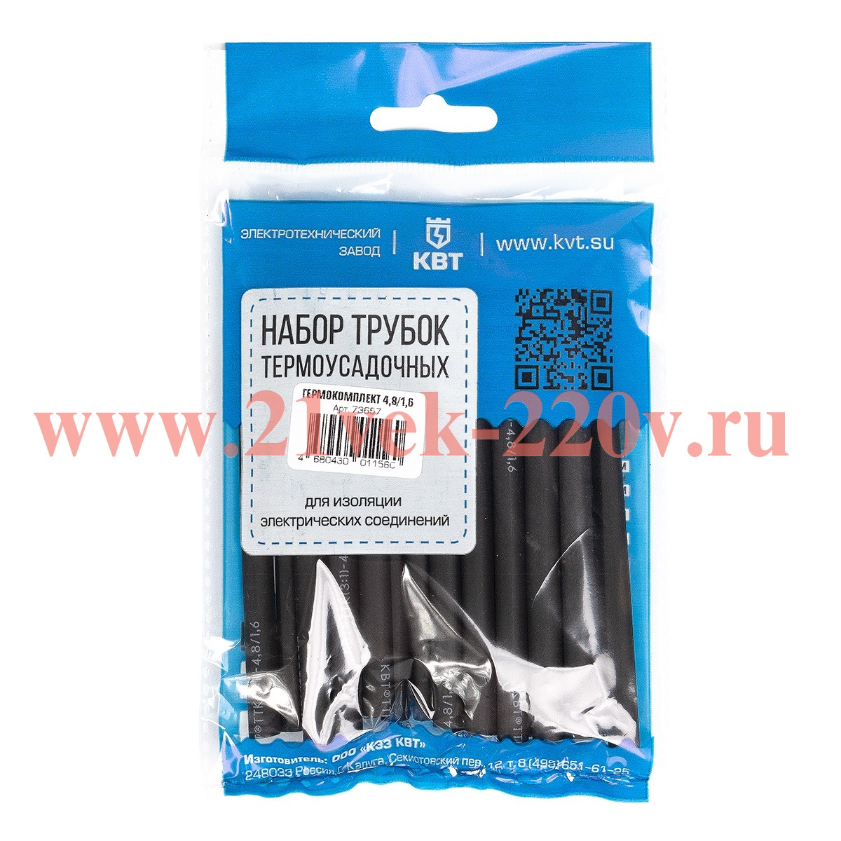 Гермокомплект 4.8/1.6, КВТ герметизация, изоляция и цветовая маркировка и антикоррозионная защита электрических соединений диаметрами 1.6-4.8 мм.