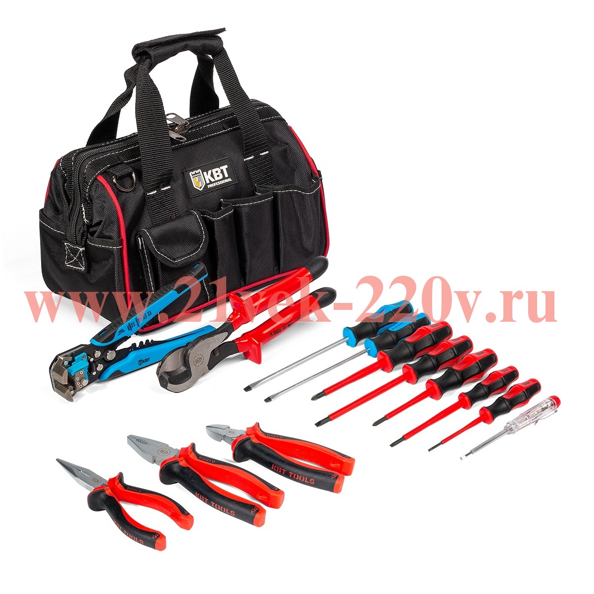 Набор инструментов "Эксплуатационщик" НИЭ-07 15 предметов в сумке SKU, КВТ. Проведение широкого перечня электромонтажных работ, работ с телефонным кабелем специалистами службы эксплуатации.