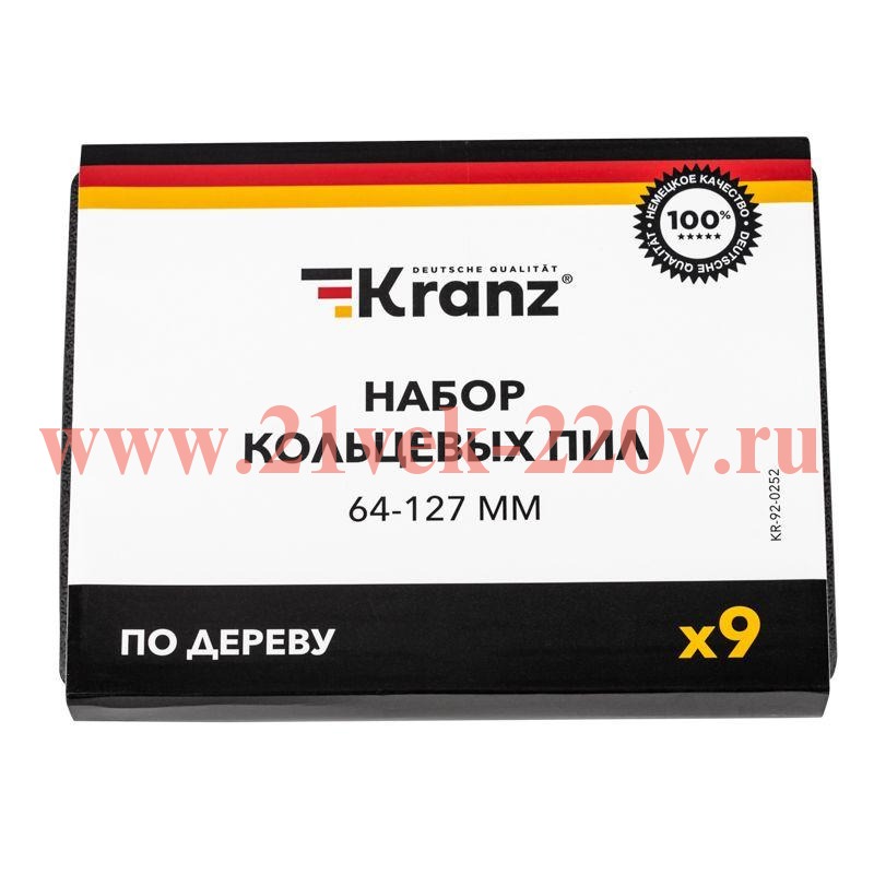 Набор кольцевых пил по дереву 64-127мм 9 предметов Kranz KR-92-0252