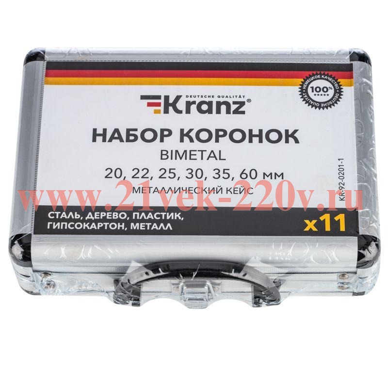Набор коронок Bimetal (20 22 25 30 35 60) 11 предметов металлический кейс Kranz KR-92-0201-1