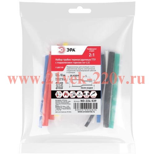 Набор термоусадочных трубок ЭРА NO-224-539 ТТУ нг-LS 2/1 №5 5 цветов 10 шт L=100 мм