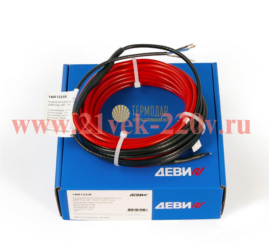 Двухжильный, экранированный, резистивный греющий кабель DEVI Comfort Flex-18T, мощностью 395 Ватт, длиной 22 метра