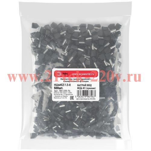 Наконечник-гильза ЭРА NO-225-74 двойной НШвИ(2) 1.5-8 с изолированным фланцем упаковка 500 шт