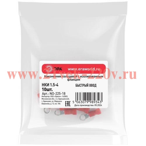 Наконечник кольцевой ЭРА NO-225-18 НКИ 1.5-4 с изолированным фланцем упаковка 10 шт