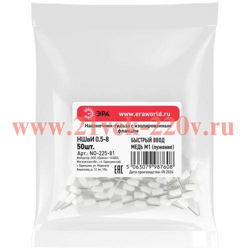Наконечник-гильза ЭРА NO-225-81 НШвИ 0.5-8 с изолированным фланцем упаковка 50 шт