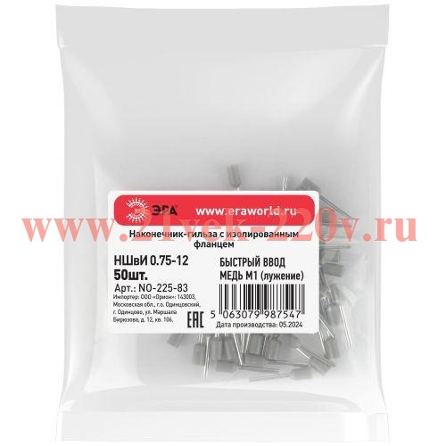 Наконечник-гильза ЭРА NO-225-83 НШвИ 0.75-12 с изолированным фланцем упаковка 50 шт
