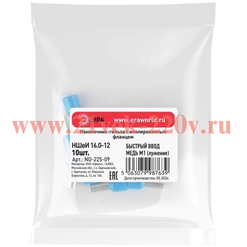 Наконечник-гильза ЭРА NO-225-09 НШвИ 16.0-12 с изолированным фланцем упаковка 10 шт