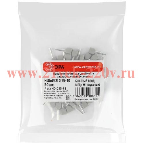 Наконечник-гильза ЭРА NO-225-98 двойной НШвИ(2) 0.75-10 с изолированным фланцем упаковка 50 шт