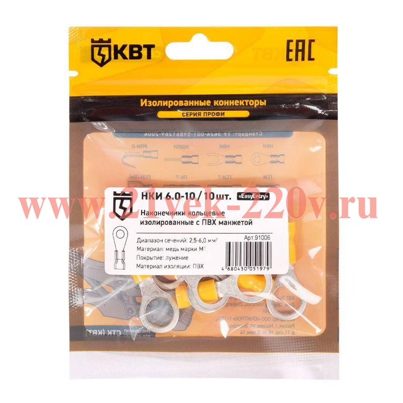 Наконечник кабельный кольцевой изолированный НКИ 6.0–10 (уп.10шт) КВТ
