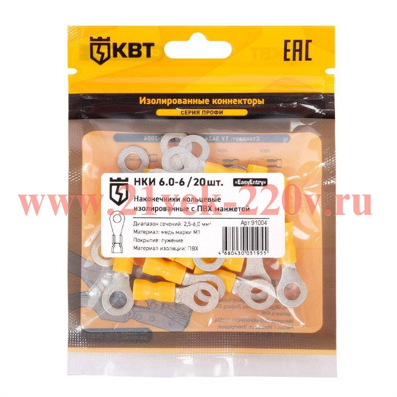 Наконечник кабельный кольцевой изолированный НКИ 6.0–6 (уп.20шт) КВТ