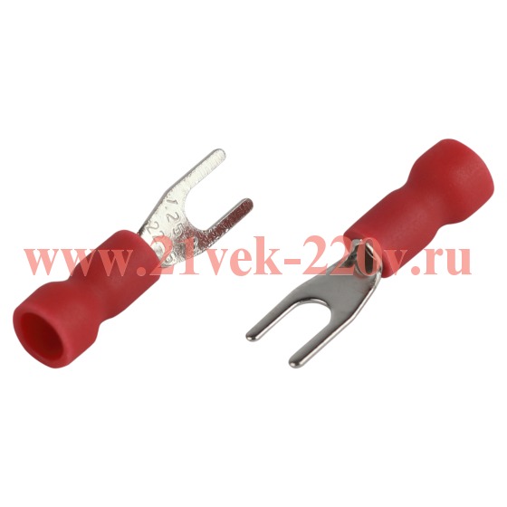 Наконечники изолированные вилочные НВИ: предназначены для оконцевания многожильных гибких медных проводников методом опрессовки при монтаже электрических соединений, где предусмотрено крепежное соединение на основе винтовой фиксации. Применение наконечников НВИ защищает проводники от механического повреждения крепежным винтом. Вилочные наконечники НВИ применяются в случаях необходимости оперативных или частых переподключений, т.к. при монтаже наконечников не требуется полный демонтаж крепежного соединения, достаточно лишь ослабить винтовую фиксацию и вставить наконечник. Особенности конструкции: • Форма изолированной манжеты выполнена в виде раструба для облегчения заведения в наконечник многопроволочных медных проводников. Место соединения раструба и гильзы ровное, благодаря чему провод входит в наконечник беспрепятственно. • Поперечные засечки на внутренней поверхности трубной части наконечников увеличивают механическую прочность соединения с проводником. • Каждому сечению провода соответствует определенный цвет манжеты: 0.2-1.5 мм2 – красный, 1.0-2.5 мм2 – синий, 2.5-6.0 мм2 – желтый. • Материал гильзы: латунь марки Л63, покрытая электролитическим лужением. Материал манжеты: ПВХ с добавлением антипиренов, не поддерживающий горение.