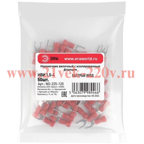 Наконечник вилочный ЭРА NO-225-120 НВИ 1.5-4 с изолированным фланцем упаковка 50 шт