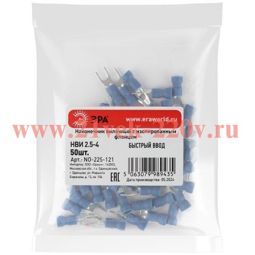 Наконечник вилочный ЭРА NO-225-121 НВИ 2.5-4 с изолированным фланцем упаковка 50 шт