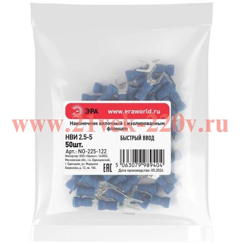 Наконечник вилочный ЭРА NO-225-122 НВИ 2.5-5 с изолированным фланцем упаковка 50 шт