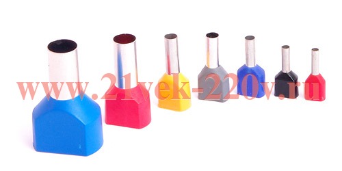 Предназначен для оконцевания многопроволочных гибких проводов и подключения их к контактным зажимам различного электрооборудования. Зачищенный конец многожильного провода заводится внутрь полой концевой трубки и затем опрессовывается вместе с трубкой с помощью специального инструмента, образуя единую конструкцию, надежно фиксирующую пучок многопроволочной жилы. Служит для оконцевания двух проводов. Материал - медь электротехническая луженая.