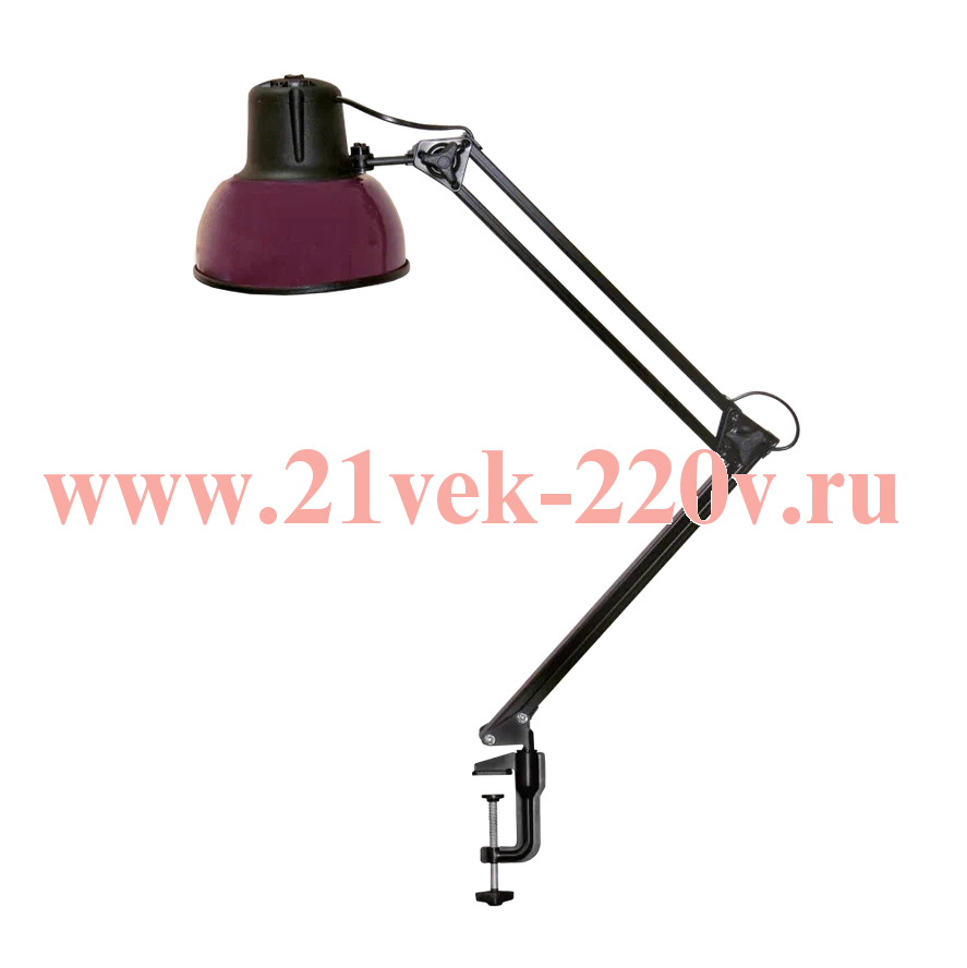 Настольный светильник ТРАНСВИТ (Россия) серии Бета-К НДБ37-60-159 220 Вольт мощностью 60Вт (ЛОН/LED) с цоколем Е27 фиолетового цвета на металлической струбцине.