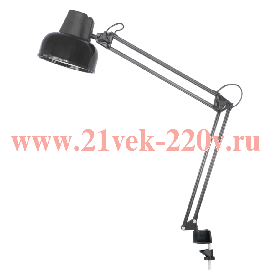Настольный светильник ТРАНСВИТ (Россия) серии Бета НДБ37-60-013 220 Вольт мощностью 60Вт (ЛОН/LED) с цоколем Е27 черного цвета на пластмассовой струбцине.