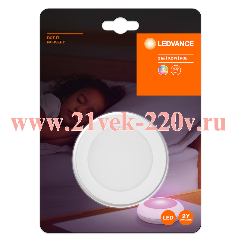 Сенсорный регулируемый светильник-ночник OSRAM LEDVANCE DOT-it Nursery RGB 0,2W 2Lm RGB, работающий от батареи.