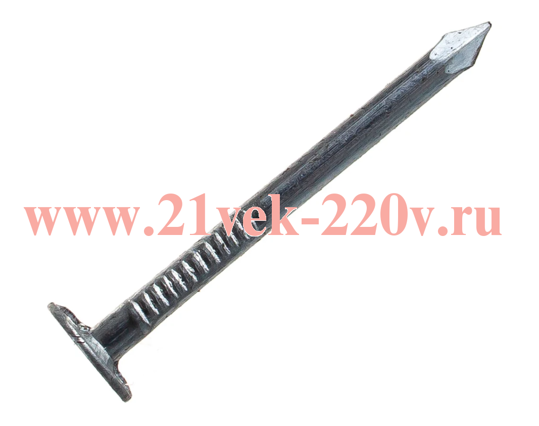 - Особенности: имеет плоскую головку увеличенного диаметра с гладкой торцевой поверхностью, стержень с круглым поперечным сечением и острый наконечник. Конструкция гвоздя обеспечивает надежную фиксацию кровельного материала и предотвращает механические повреждения покрытия при монтаже.