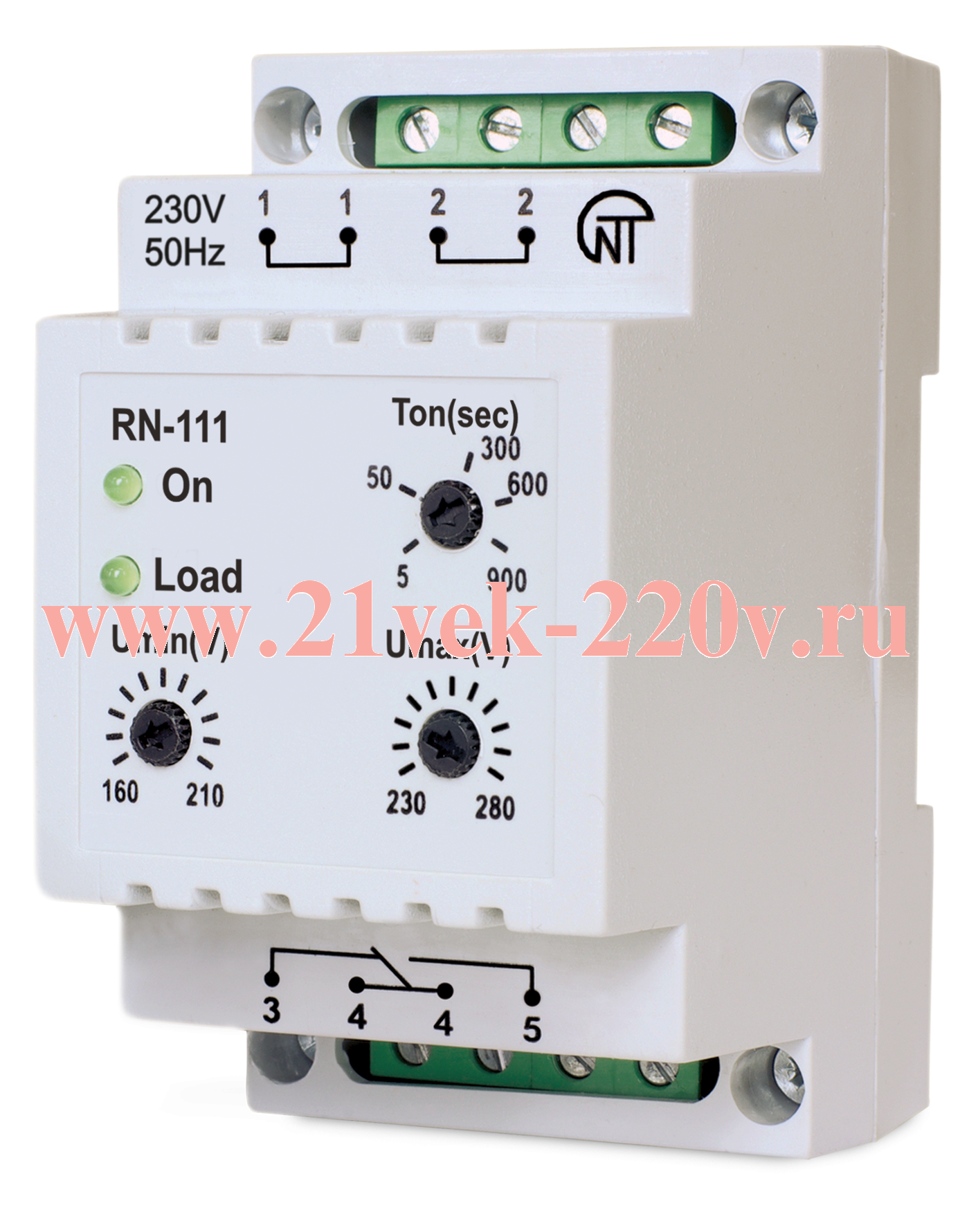 Используется для отключения и промышленной однофазной нагрузки 220 В, 50 Гц при недопустимых колебаниях напряжения в сети с последующим автоматическим включением после восстановления параметров сети.