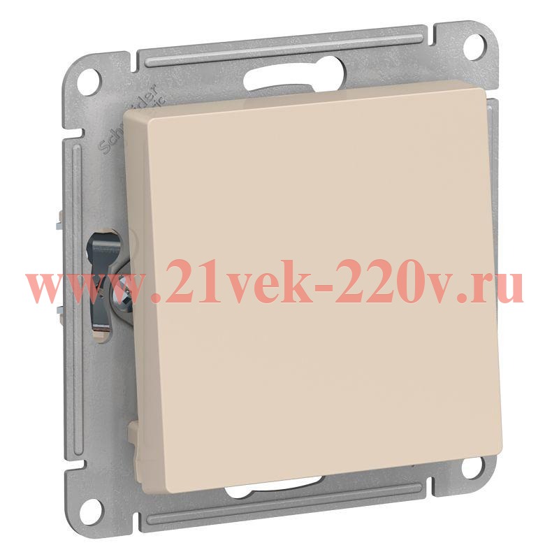 Встраиваемый электрический 1-клавишный проходной выключатель света, Атлас Дизайн, бежевого цвета ATN000261