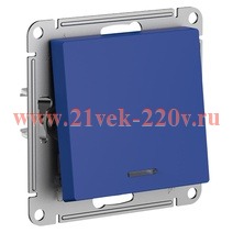 Встраиваемый электрический 1-клавишный проходной выключатель цвета аквамарин с подсветкой, АтласДизайн