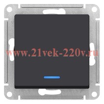 Встраиваемый электрический 1-клавишный проходной выключатель света с подсветкой, цвет карбон ATN001063