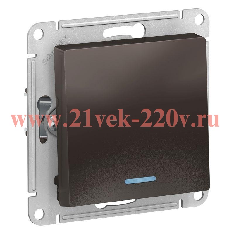 Электрический 1-клавишный выключатель света для скрытого монтажа с подсветкой, Атлас Дизайн, цвет мокко ATN000613